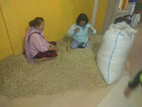 熟練のピッカーさん達がベルトコンベアに乗せられた生豆をチェックし、一つ一つ取り除いていきます。通常スペシャルティコーヒーと呼ばれるマンデリンでも、このハンドピック用コンベアは1回、多くて2回通すことが多いのですが、この商品では回数に規定を設けず厳しい基準値以下の状態になるまでハンドピックを続け徹底的に不良な豆を取り除いていきます。