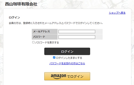 オンラインショップにログイン。