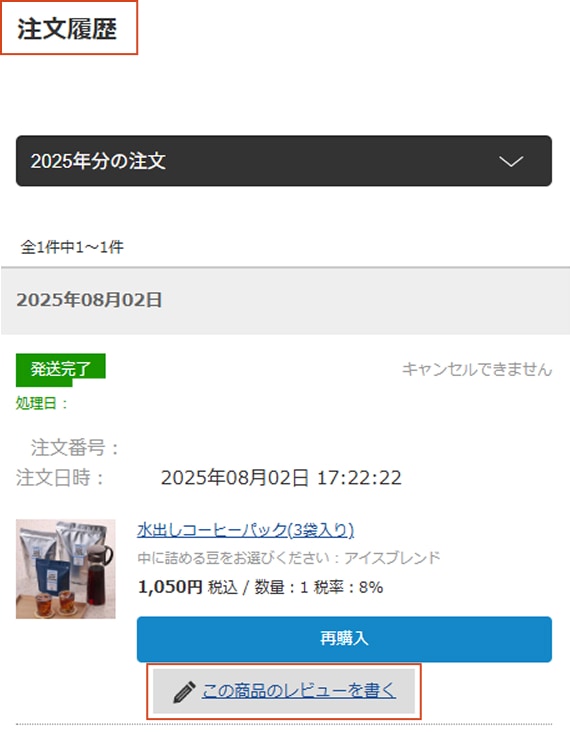 -注文履歴からレビューを投稿する場合-